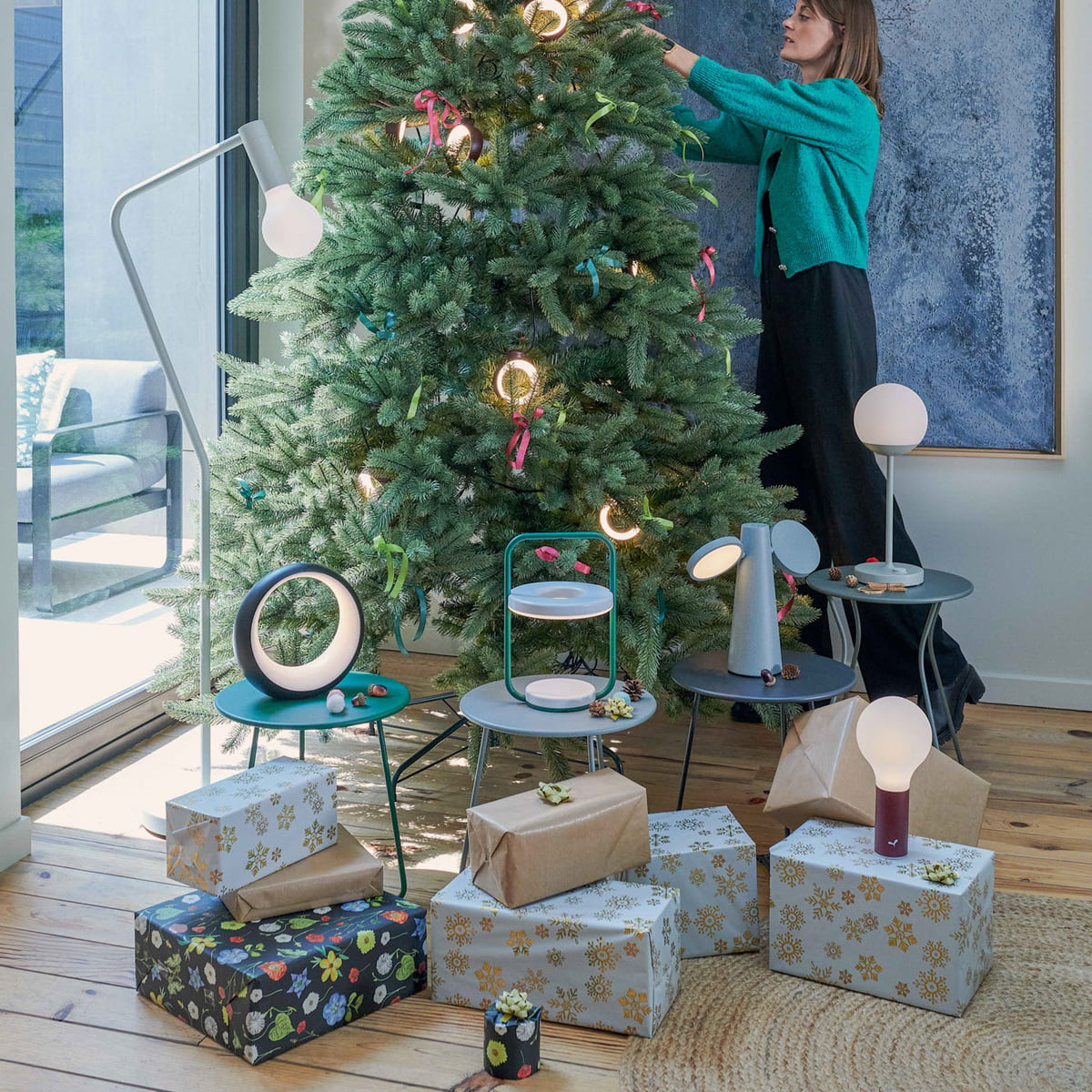Oto ist eine flexible Inn-Outdoor-Akkuleuchte von Fermob